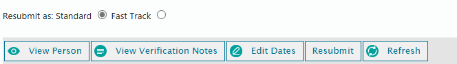 Resubmit can be done as a Standard or a Fast Track verification by clicking the appropriate radio button. If the option to fast track is chosen, a fee will be payable.